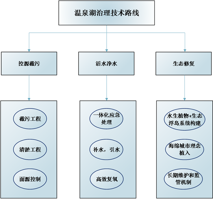 温泉湖处理目标:治理后底泥达到《土壤环境质量标准》(GB15618-1995)二级标准,水达到《地表水环境质量标准》(GB3838-2002)V类标准。