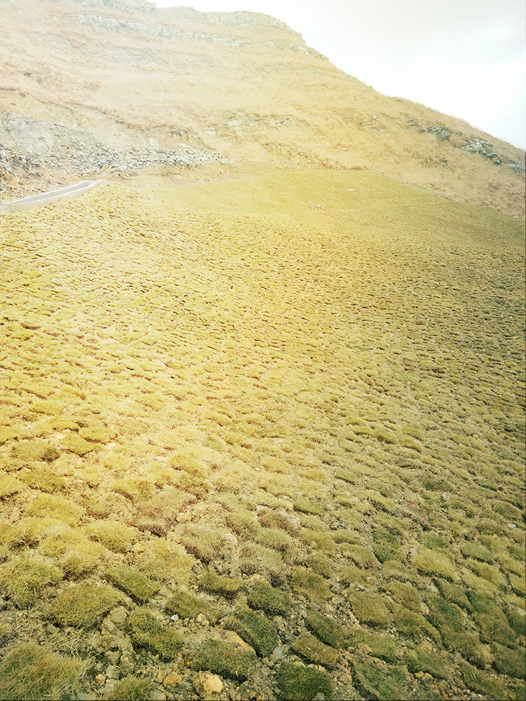我司为了满足地方政府打造生态旅游景点规划要求,就地取材,采用毛石混凝土重力式挡土墙结构对废渣堆进行原位固定稳定。结构表面光滑平整,线条流畅;因受场地条件限制,对坡度大于1:3的废渣堆采用网格梁护坡工艺,既达到渣堆稳定要求,又形成一道美丽的景观;将原设计的撒播草籽绿化变更为铺设草皮绿化,风景更显优美。采用场地局部覆膜防渗、封场全覆盖覆膜防渗工艺,有效的控制了重金属渗滤液的外泄,实现了由治理前的无序排放到治理后的有序集中收集处置的治理目标。