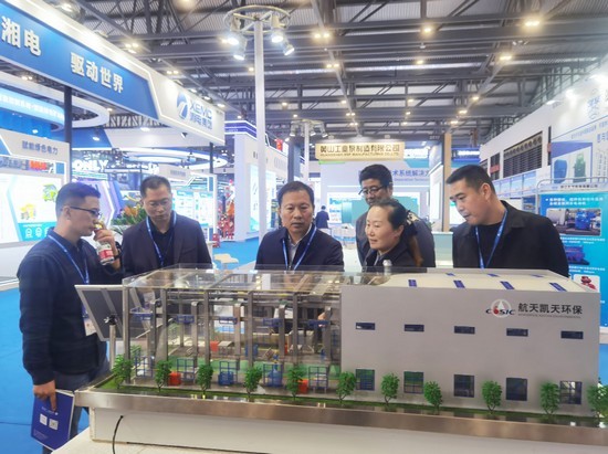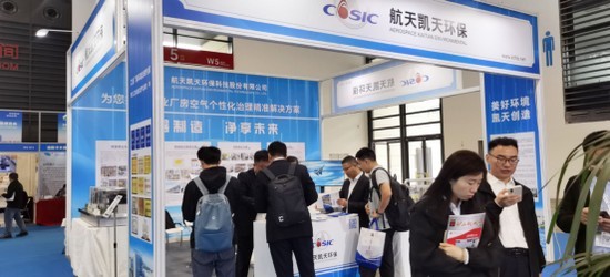 展台上,高大厂房恒温恒湿除尘系统模型与转轮+RTO废气净化模型吸引了众多专业观众驻足交流。前者针对大型工业厂房空间大、烟尘捕捉难的问题,展示了如何在保障生产环境舒适稳定的同时,实现高效除尘与节能运行;后者则聚焦VOCs治理领域,通过转轮浓缩与蓄热氧化技术的结合,展现了航天凯天在废气净化方面的技术实力与工程经验。