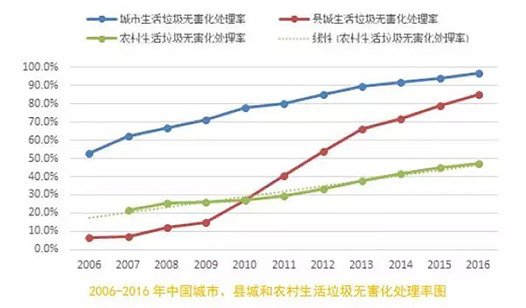 数据显示,我国目前有40%的建制村垃圾处理设施缺失,农村垃圾处理率仅为40%左右。农村垃圾治理必将成为未来行业发展的新热点,这是一片尚待开垦的万亿市场蓝海。